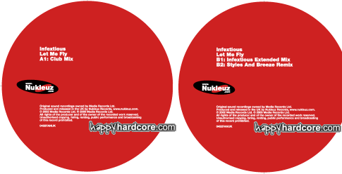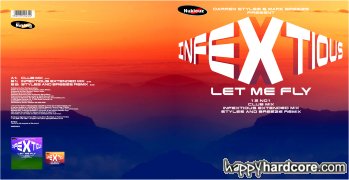 Yes that's correct, Nukleuz the famous hard house label is releasing a hardcore remix amongst others of Darren Styles and Mark Breeze new tune Let me Fly by Infextious. This new tune will be released on a double vinyl pack and CD, following this massive release will be Feelin Me and Chemical Love. Promo is out now with full release due 31st March 2003. HappyHardcore.com has received first and exclusive the complete details, including full track list and complete artwork!